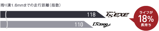 EXE専用「低発熱NVRラバー」が静粛性、乗り心地の向上に貢献。さらにはe-Hybridコンパウンドと相まって、低燃費にも貢献。 ロングライフポリマー配合により、耐摩耗性能も向上しています。